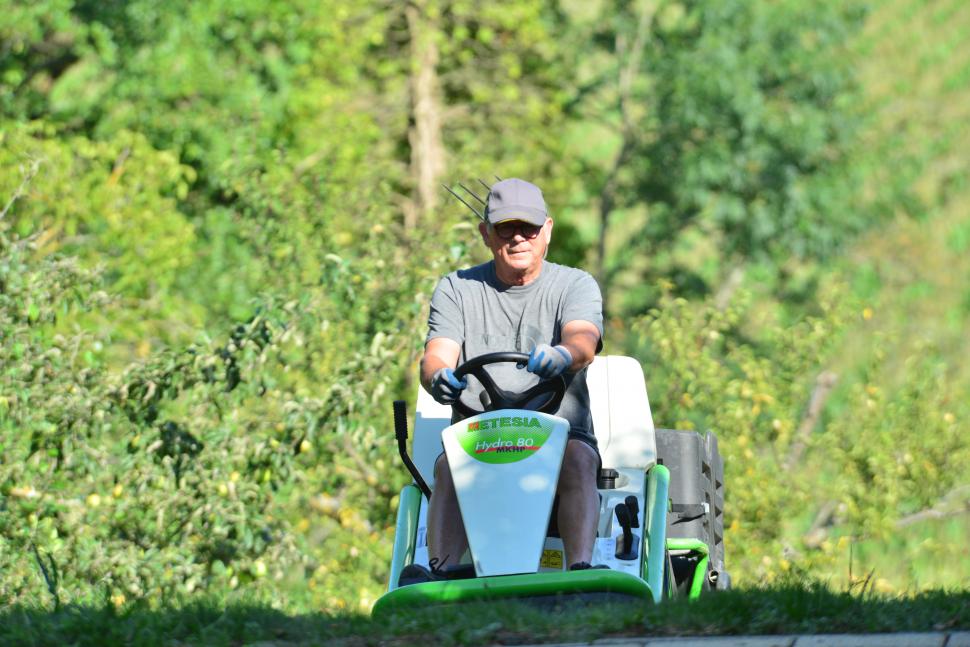 Jean-Marie Meder zegt dat zijn Hydro 80 zitmaaier zeer wendbaar is en uitgerust is met een krachtige motor, en "dat is wat ik hier nodig heb, want ik heb 27 are grond met een helling van soms 10%."